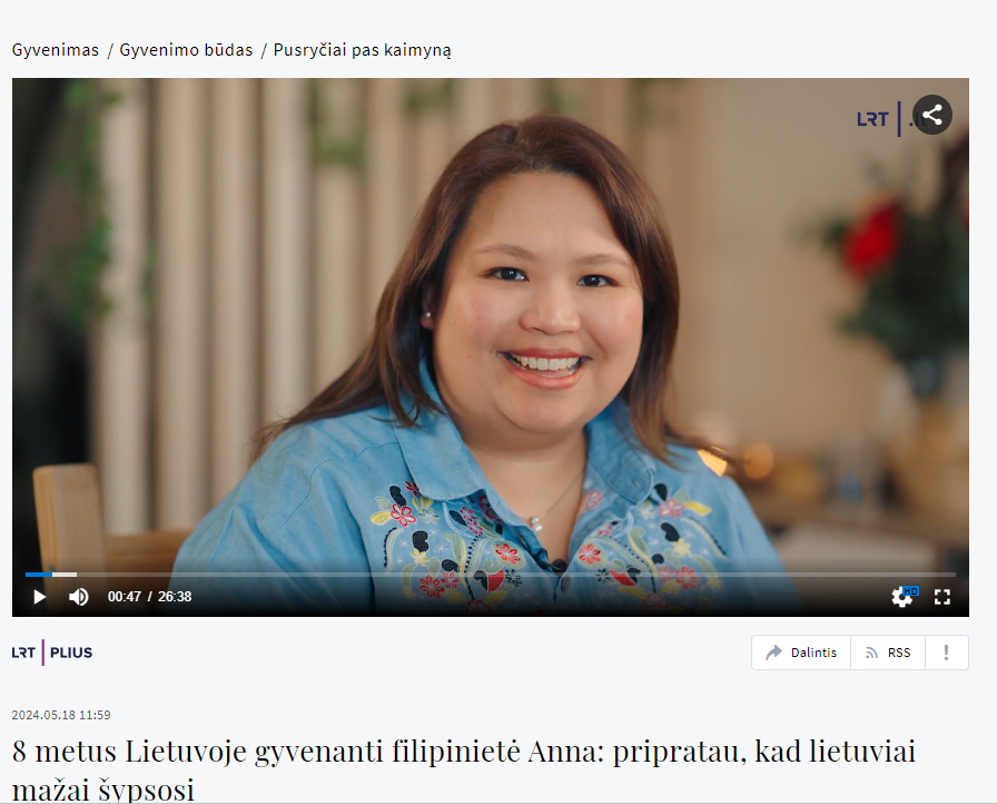 May 18, 2024 – LRT aired its episode about the Philippines by featuring myself, Anna Celina Varanavicius, and another Filipino entrepreneur living in Lithuania, Maria Rofa Li