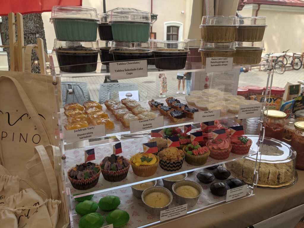 Merienda specifically participated during the presentation of food from different migrants living in Lithuania, which lasted for 4 hours (compared to 2 hours in 2023), from 13:00 to 17:00. Several items from Merienda menu list was showcased during this event, including the Sansrival, Ube/Strawberry “Love of Baguio” Cake, assorted cupcakes and lengua de gato cookies, steamed cake with cheese filling (puto cream cheese), ube and pandan puto (steamed cakes), Filipino hot chocolate (Tableya) and an assortment of Filipino artisan chocolates.