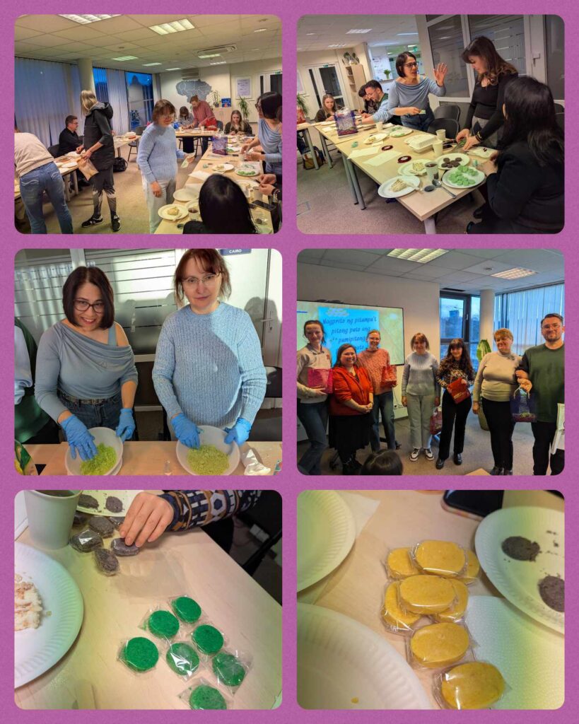 Merienda – Filipiniečių Užkandžiai/Filipino Snacks – A Taste of Filipino Flavors, coordinated with IOM Lithuania (International Organization for Migration) or MiCenter Lithuania and offered a a polvoron-making workshop on the 10th of April 2025, as one of the activities for the celebration of the Filipino Food Month 2025, aiming to promote Filipino food and flavors in Lithuania.