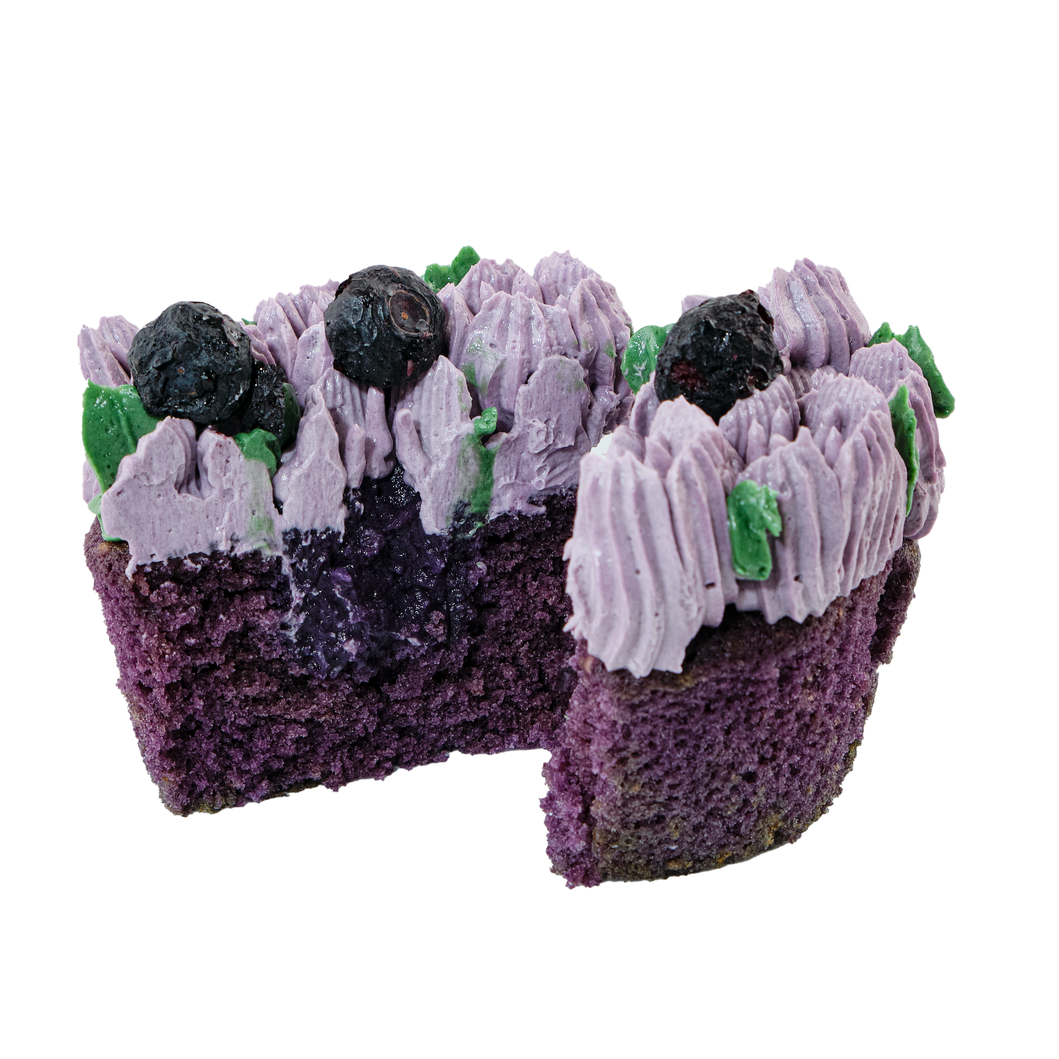 LT – Neprilygstamas Oooohh-be keksiukas (ube skonio, dar žinomas kaip purpurinis jamas arba sparnuotoji dioskorėja) – „Ube“ yra Filipinuose populiari šakninė daržovė, žinoma dėl savo ryškios violetinės spalvos, ir naudojama įvairiuose filipinietiškuose desertuose. Mūsų keksiukai yra pagardinami aukštos kokybės ube ekstraktu, importuojamu iš Filipinų, ir užpildomas ube-kokoso skonio kremu. Viršus dekoruojamas sviestiniu kremu.